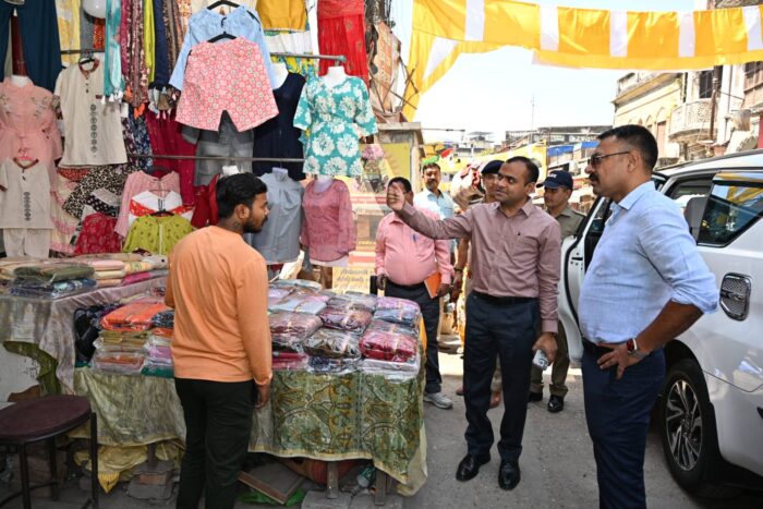 तथा संबंधित क्षेत्रों में संचालित हो रही दुकानों को किसी भी दशा में सड़क एवं फुटपाथ पर न लगाई जाए तथा जो भी दुकानें लगाई जा रही है नाली के अंदर ही लगाई जाए, नाली एवं फुटपाथ पर लगाई जाने वाली दुकानों के विरुद्ध आवश्यक कार्यवाही करने के निर्देश पुलिस एवं संबंधित अधिकारियों को दिए।