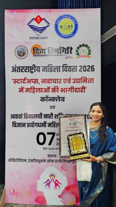 उत्तराखंड स्टेट कौंसिल फॉर साइंस एंड टेक्नोलॉजी (UCOST) तथा दिव्य हिमगिरी के संयुक्त तत्वावधान में इंस्टिट्यूशन ऑफ़ इंजीनियर्स (इंडिया ), देहरादून के सभागार में आयोजित आठवें हिमालयी नारी शक्ति सम्मान–2026 समारोह में पूर्व जिलापंचायत सदस्य सामाजिक कार्यकर्ता, संस्कृति कर्मी डॉ . ममता कुंवर को सम्मानित किया गया।