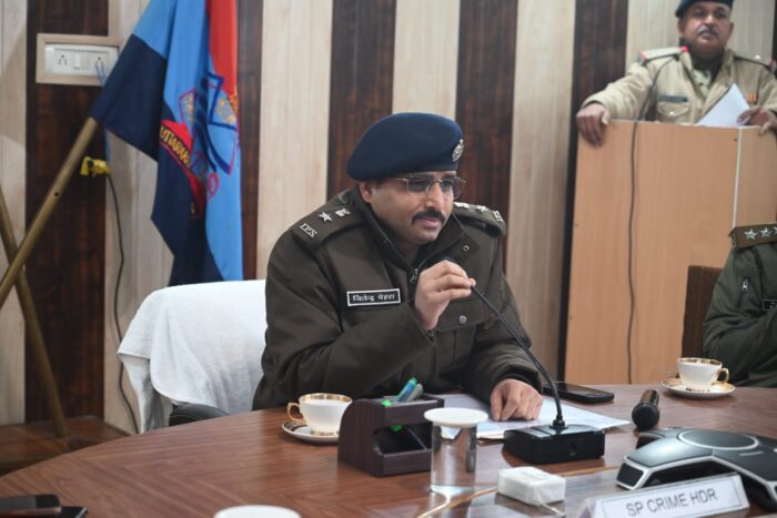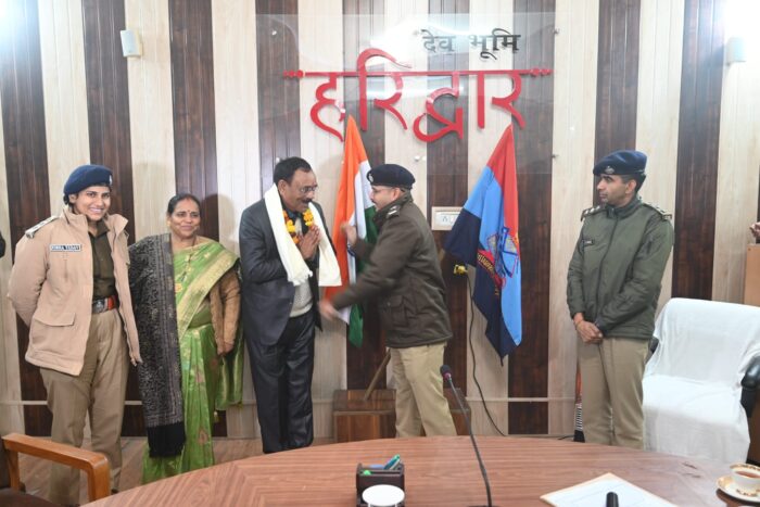 पुलिस अधीक्षक अपराध सहित अन्य अधिकारियों द्वारा फूल माला पहनाकर दिया सम्मान