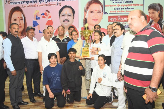 उत्तराखंड यूथ महिला एवं पुरुष मुक्केबाजी प्रतियोगिता 2026 में बालिका वर्ग में पिथौरागढ़ की टीम ओवरऑल चैंपियन बनी है। रविवार को योगस्थली खेल परिसर के मल्टीपरपज हॉल में प्रतियोगिता का भव्य समापन किया गया। इस अवसर पर रेखा आर्या ने विजेता खिलाड़ियों और टीमों को ट्रॉफी व मेडल देकर सम्मानित किया।