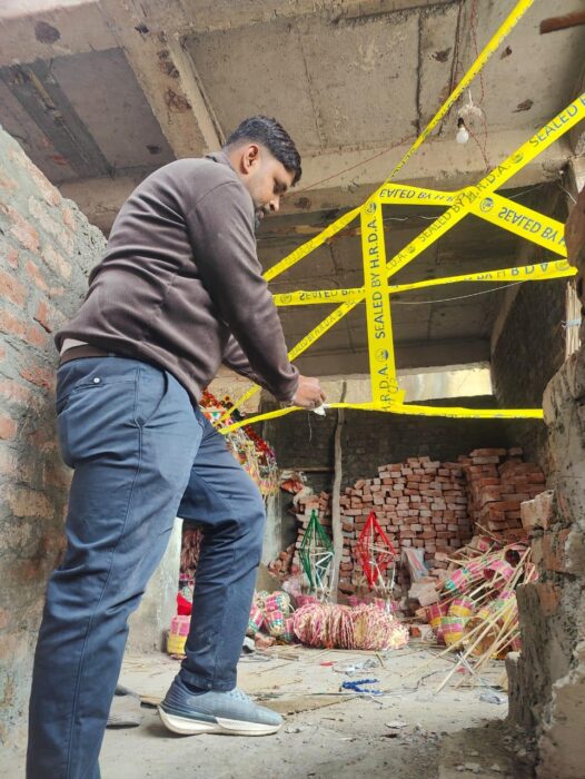 स्थल पर उपस्थित अनाधिकृत निर्माणकर्ता को निर्देश दिए गए कि स्थल पर बिना मानचित्र स्वीकृत कराए आगे निर्माण कार्य ना किया जाए।