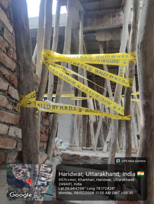 हरिद्वार भीम गोड़ा कुंड के निकट रेलवे लाइन के पास श्री नवीन व मुन्ना परांठे वाला द्वारा लगभग 40*20 फीट में पूर्व निर्मित भवन के द्वितीय तल पर किए जा रहे अनाधिकृत व्यवसायिक निर्माण को प्राधिकरण क़ी टीम द्वारा पुलिस बल की उपस्थिति में सील किया गया।