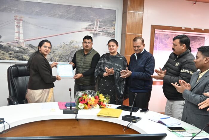 टिहरी। आज जिला सभागार नई टिहरी में जनता दरबार कार्यक्रम के दौरान जिलाधिकारी टिहरी गढ़वाल नितिका खण्डेलवाल द्वारा समान नागरिक संहिता में सबसे पहले शत प्रतिशत पंजीकरण कराने वाले ग्राम पंचायत पाथौ एवं शिवपुरी के प्रधान को प्रशस्तिपत्र, स्मृति चिन्ह् एवं शॉल भेंट कर सम्मानित किया गया। इसके साथ ही संबंधित ग्राम पंचायत विकास अधिकारी पंकज उनियाल एवं विनित रावत को भी सम्मानित किया गया।