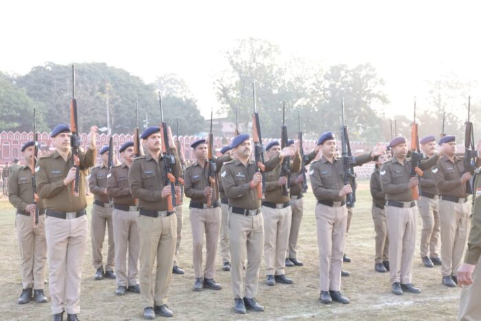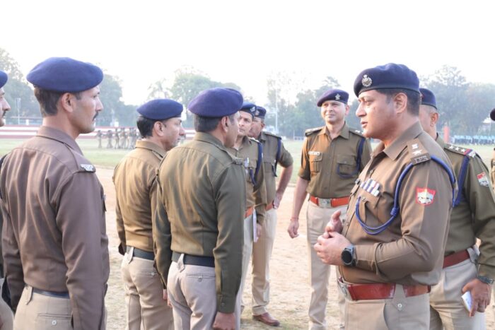 परेड का निरीक्षण कर उपस्थित अधिकारियों को कर्मचारियों के हितार्थ दिये आवश्यक दिशा-निर्देश
